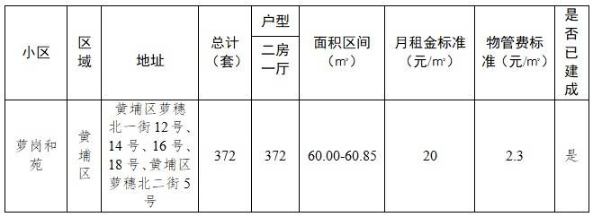 本次推出分配的房源为2025年度第一批常态分配剩余房源。房源点为萝岗和苑,总套数372套,均为两房一厅。